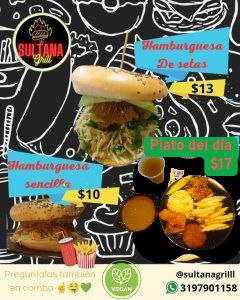 IG:@LasultanaGrill Hamburguesas, wrpas , burritos con proteina de falafels , verduras y salsas de la casa a $10 mil pesos, en combo con jugo y papitas $16.000 Abierto de lunes a viernes y Domingos 11 am 7pm .platos del dia . cazuela de lentejas , frijol , muy recomendado . cerca a universidad Nacional. Reservas y Domicilios